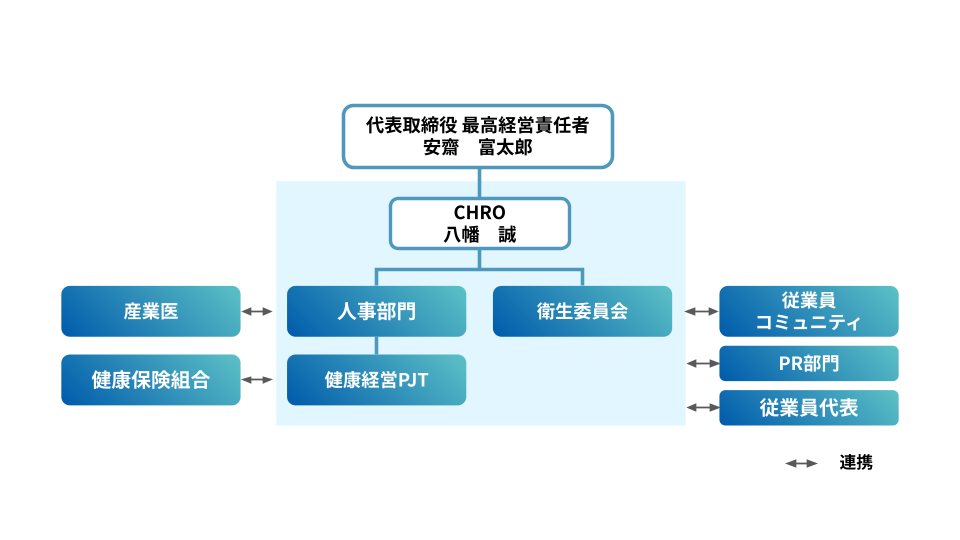 経営陣、従業員代表、健康保険組合、産業保健スタッフ等が