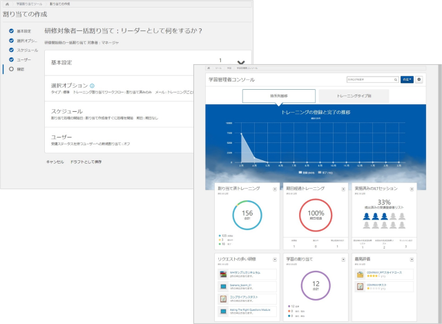学習管理者やマネージャーが企業の人材育成計画に基づき、従業員の属性や状況に最適な研修プログラムの割り当てを行うための機能を提供します。